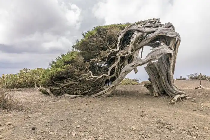 2. Похожая история с канарским можжевельником на самом западном острове Канарского архипелага - Эль Йерро. Только ветер здесь северо-восточный: