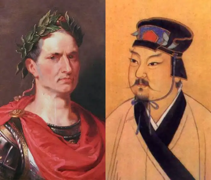 Слева: Гай Юлий Цезарь. Справа: Бай Ци