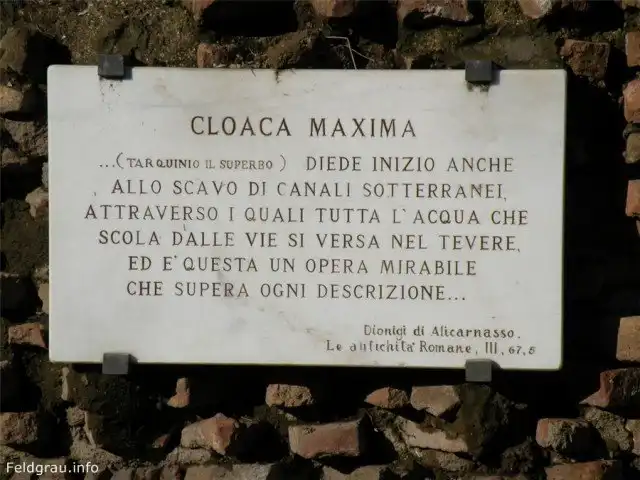 Эта система первоначально использовалась, чтобы осушить болота и обеспечить ливневые стоки из секций Центрального форума города на берегу реки Тибр.