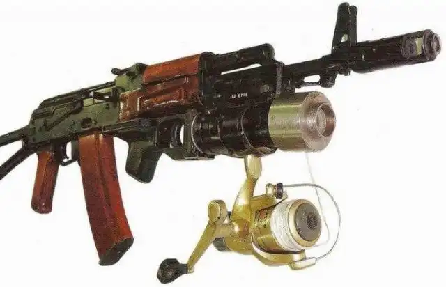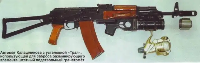 Может быть сложно поверить, однако катушка от спиннинга на подствольном гранатомете – это вовсе не полевое творчество каких-то «бомжеватых» партизан из страны третьего мира, принимающей участие в «холодной войне» между ведущими государствами планеты. Данная разработка была создана в студенческом КБ (по всей видимости в качестве учебной работы) при кафедре Стрелково-пушечного вооружения Тульского государственного университета. Называется данное «чудо» - система «Трал» и предназначено оно для снятия мин и растяжек.