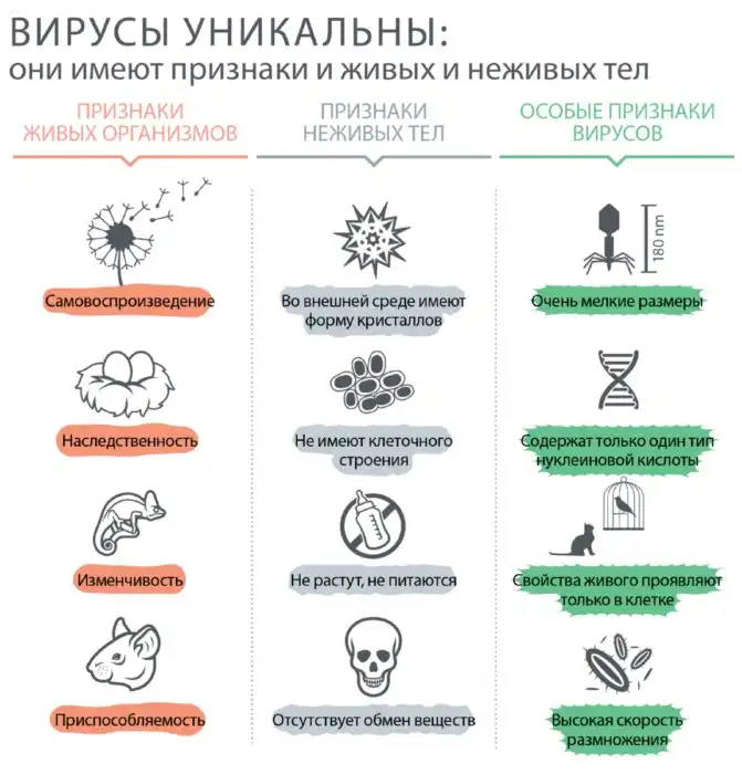 Вирус не является ни микроорганизмом, ни клеткой, это особая молекула ДНК или РНК с белковой оболочкой, лишенная способности воспроизводиться вне клеток живого организма. Также вирус можно сравнить с программным кодом, исполняющимся внутри клетки-хозяина. Вирусы настолько малы, что одна капля воды может содержать их около миллиона. Если же посчитать их общее количество в природе, число получится поистине астрономическим — 10^39. Только представьте: это в 100 миллионов раз больше, чем всех звезд в видимой Вселенной.