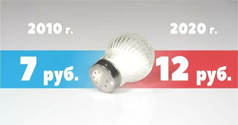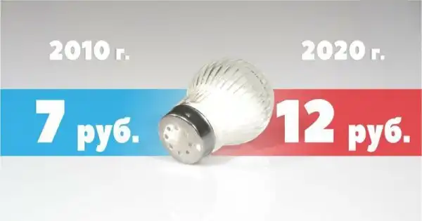 В зависимости от производителя и региона покупки цены могут отличаться, но мы берем среднюю стоимость 1 кг соли. В 2010 она составляла - 7,25 руб, а в 2020 - 12 руб.