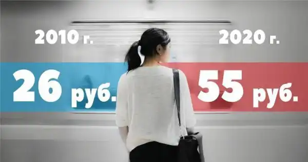 Разовая поездка в Московском метро в 2020 обойдется в 55 рублей, а в 2010 году можно было проехаться в подземке всего за 26 рублей.