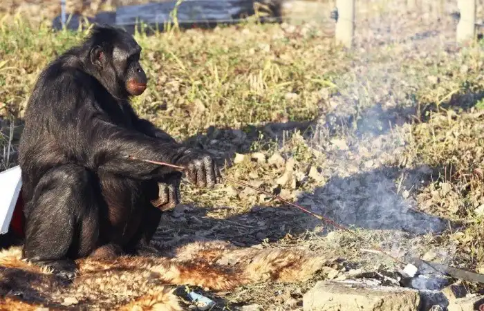 Бонобо по имени Канзи научили разжигать костёр. После этого он делал это самостоятельно и жарил себе маршмеллоу.