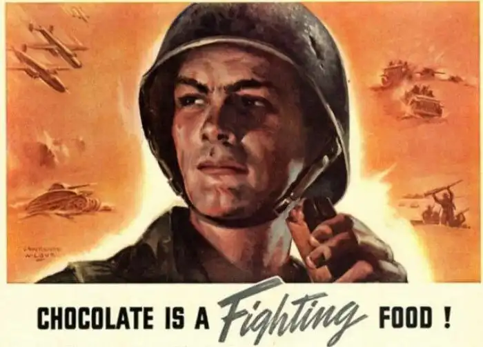 "Шоколад - еда, которая сражается". Плакат времён Второй Мировой войны