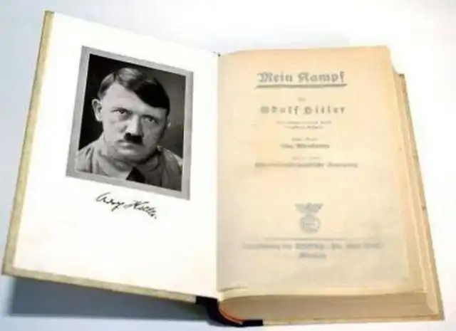 Один из экземпляров известной книги "Майн Кампф", подписанный лично Адольфом Гитлером в 1924 году, был продан на аукционе за 35 000 долларов.