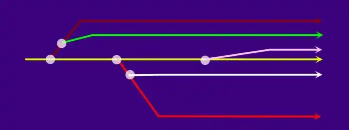В момент «выбора» Вселенная разветвляется и появляется новая копия, идущая параллельно с первой версией, но с небольшим изменением