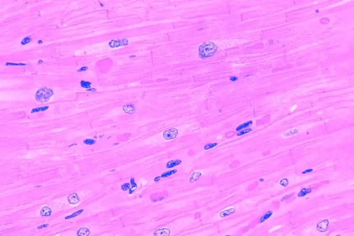 Сердечная мышца, называемая как миокард, отличается от скелетной и гладкой мускулатуры особым гистологическим строением – строением мышечных клеток.