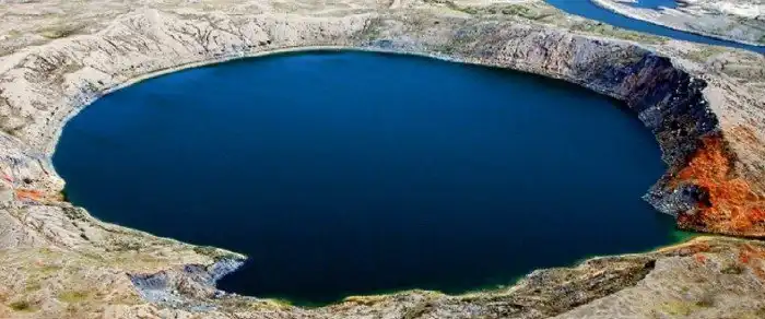 На месте воронки образовалось красивое озеро. Но красота эта была только внешняя. Биологи привезли сюда 150 видов водных животных и 100 видов растений. Даже экзотические виды, например, пираньи из Амазонки.
