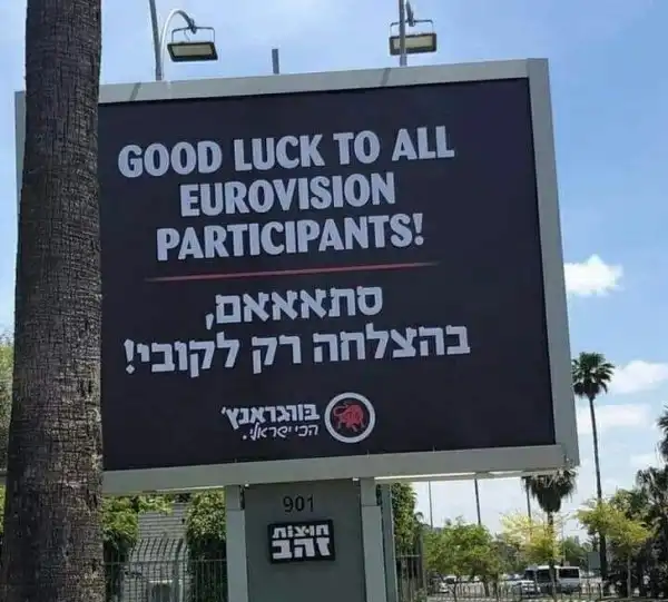 Надпись на английском: «Удачи всем участникам „Евровидения“!»