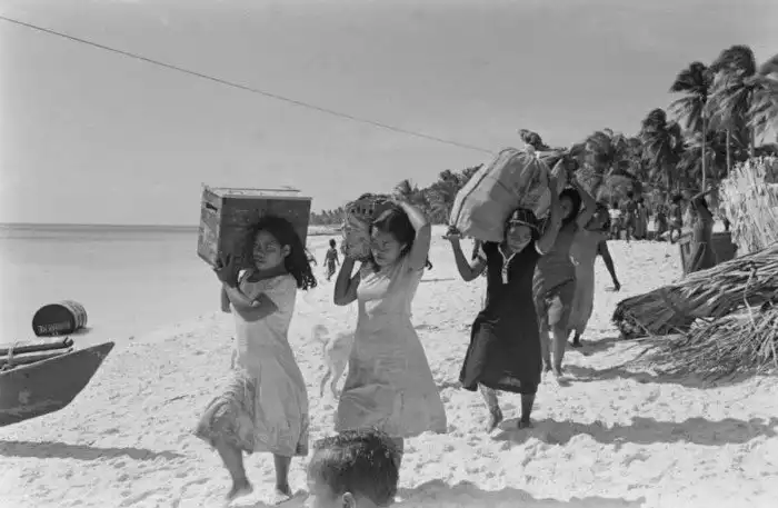 Жители атолла Бикини готовятся к эвакуации перед проведением испытаний ядерного оружия в 1946 году. Источник изображения: gettyimages.com