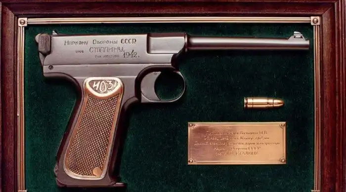 Конструкцию предложил оружейник П.В. Воеводин, участвовавший в конкурсе на проектирование нового автоматического пистолета для Красной Армии. Для 1938 года технические характеристики этого оружия были очень хороши: простота и надежность конструкции дополнялись высокой кучностью и мощностью боя. До 1942 года заводы СССР выпустили две опытных партий пистолета Воеводина, а затем началась война.