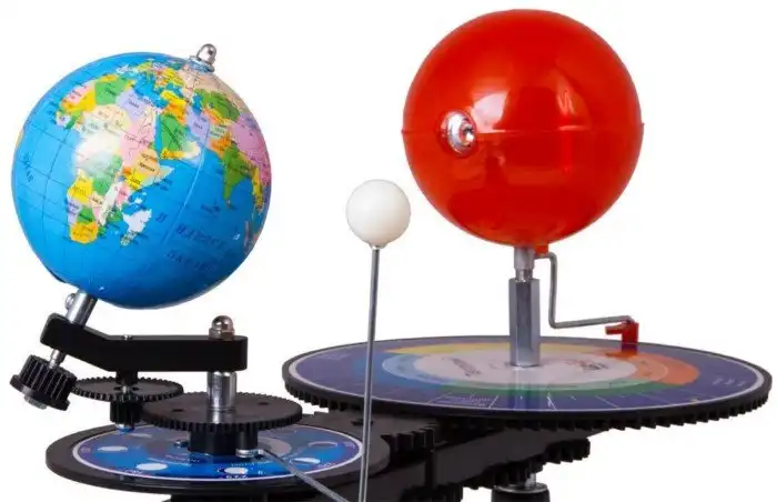 А где же загадка? Смотрите дальше. Солнечное затмение происходит в новолуние, когда во время своего вращения Луна закрывает от нас Солнце; лунное затмение всегда случается в полнолуние, когда тень от Земли падает на Луну. Для того, чтобы показать, как именно происходят солнечные и лунные затмения, используют прибор, который называется теллурий: