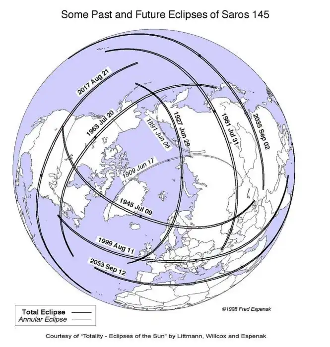 Солнечные затмения одного сароса