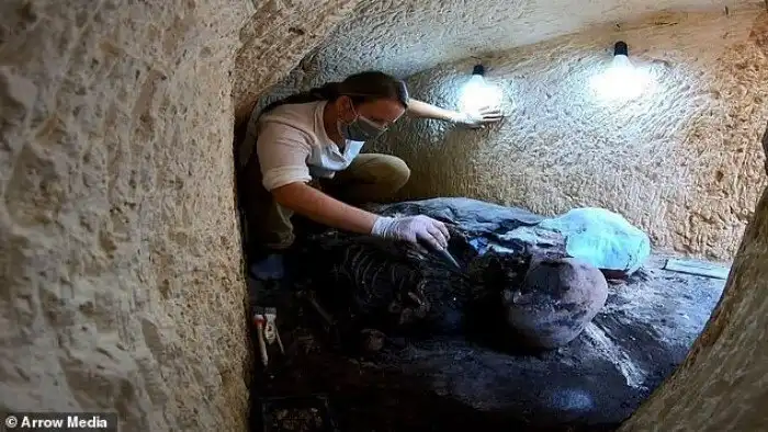 Международная команда археологов сделала ценную находку в египетском храме Тапосирис Магна - одном из предполагаемых мест захоронения царицы Клеопатры. Мумии, которые пролежали нетронутыми в течение 2000 лет, находятся в плохом состоянии из-за проникшей в усыпальницу воды, однако, ученым удалось установить, что они покрыты сусальным золотом. Это говорит о высоком статусе погребенных, так как такая роскошь была доступна только представителям высшего египетского общества.