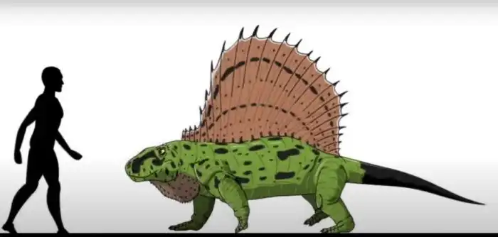 Хищник, живший в пермский период (да, именно так, это часть палеозойской эры). Питался всеми видами живых существ, которых мог одолеть. «Парус» на его спине из вытянутых и покрытых кожей позвонков служил терморегулятором.