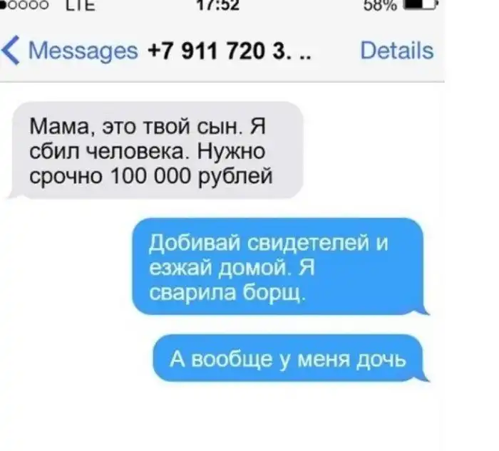 2. Маму это девушки телефонные мошенники однажды развели на деньги. С тех пор она "мстит" им, разыгрывая их голосами знаменитостей.