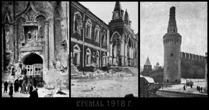 Так, являвшийся «проходным двором» Кремль находился в полуразрушенном состоянии (после столкновения красногвардейцев с юнкерами в момент октябрьского восстания).