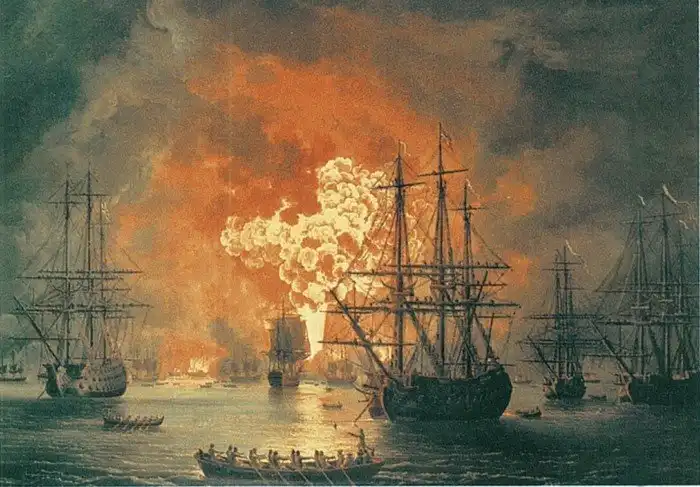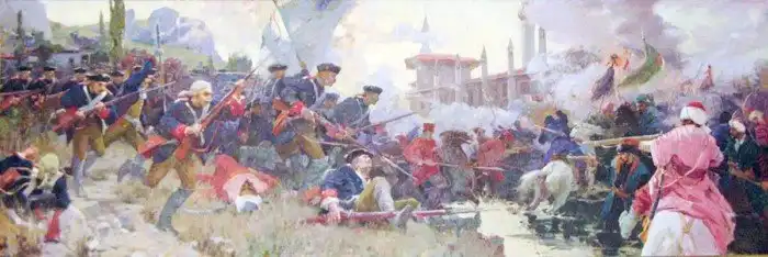 В 1770 году две русские армии под командованием Петра Румянцева и Петра Панина нанесли османским войскам несколько сокрушительных поражений. Особенно впечатляющим был разгром Румянцевым 1 августа в битве при Кагуле, в которой 17 тыс. русских солдат наголову разбили 150 тыс. турок. 16 сентября Панин в результате кровопролитного штурма взял Бендеры (ту самую крепость, в которой когда-то спрятались Карл XII и Мазепа; среди прочих в этой битве участвовал и тогда никому еще не известный казак Емельян Пугачев). И наконец, в-четвертых, в Средиземном море появилась русская военно-морская эскадра под командованием графа Алексея Орлова.