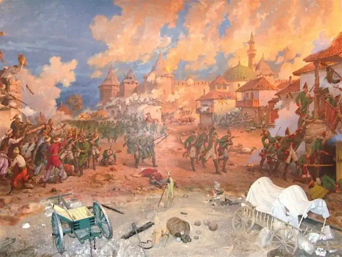 Первая большая война Османской империи с Россией началась по вине украинского гетмана Петра Дорошенко, признавшего себя в 1669 году вассалом султана Мехмеда и попросившего у него помощи против поляков и русских. Война с Польшей была для Турции успешной — после нескольких сражений поляки сдались и признали Правобережную Украину турецким протекторатом, но потом турки столкнулись с русскими, успевшими к тому времени арестовать Дорошенко и занять тогдашнюю столицу запорожского казачества — Чигирин. Подступивший к Чигирину с 70-тысячной армией Ибрагим-паша по прозвищу «Шайтан» обнаружил в крепости несколько тысяч плохо вооруженных русских солдат, посмеялся и сказал, что воевать с ними будет завтра.