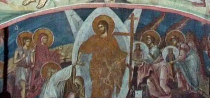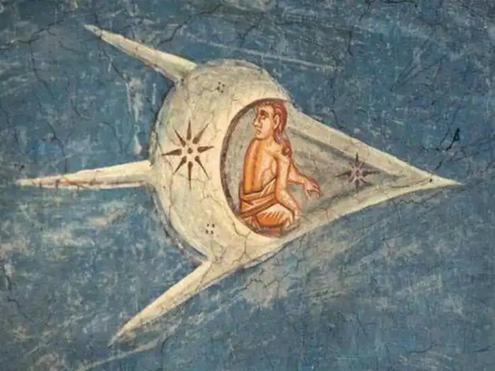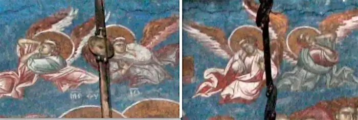 Специалисты обратили внимание и ещё на одну деталь: на фреске «Воскресение Христа», расположенной сразу же под фреской «Распятие», воскресший Христос изображён на фоне очень странного «кокона» или «капсулы» с треугольными «стабилизаторами» по бокам, чем-то напоминающего нарисованную ребёнком ракету.