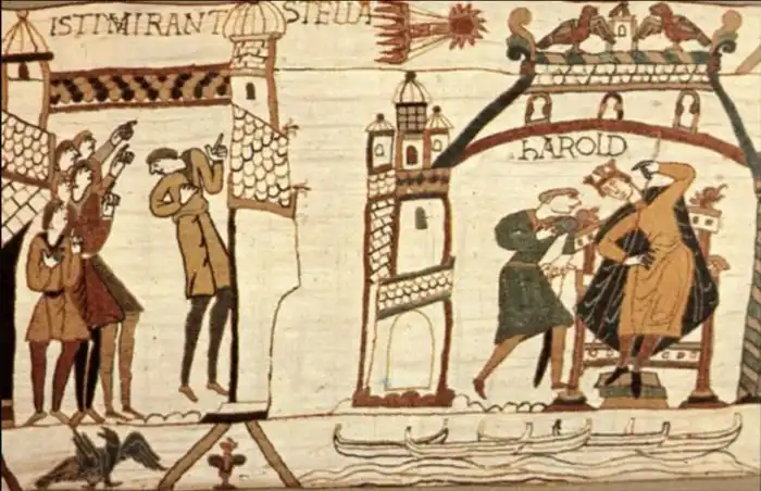 В-третьих, схожесть изображений «летательных аппаратов» с Солнцем и Луной ну просто совершенно никакая. Уж если сравнивать с природными явлениями, эти изображения скорее похожи на кометы, чем на Луну и Солнце! Кометы, кстати, средневековые художники рисовали вполне правдоподобно – можно, вспомнить, скажем, изображение кометы на созданном в XI веке знаменитом гобелене из Байё:
