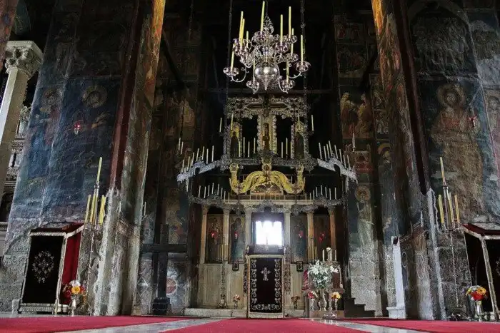 Храм Спаса Вседержителя в Дечанах, где находится фреска. Общий вид