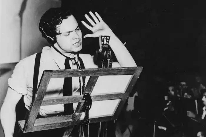 Орсон Уэллс во время эфира радиоспектакля «Война Миров». Источник изображения: cfetradio.com