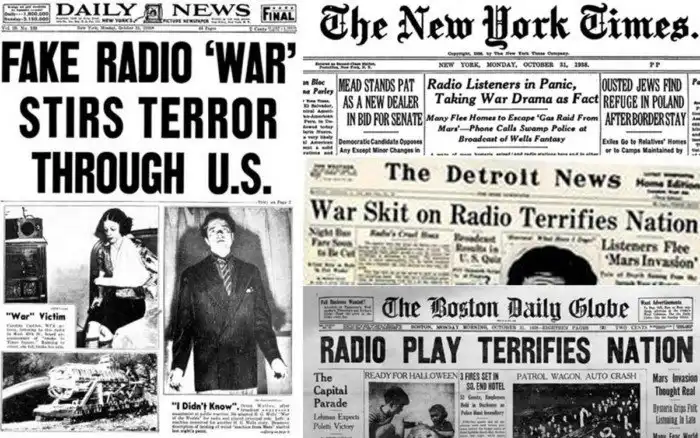 Заголовки газет о панике среди населения после выхода в эфир радиопередачи. Источник изображения: telegraph.co.uk