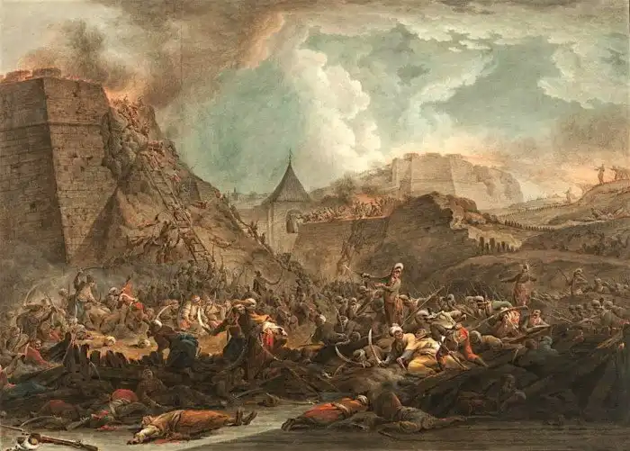 Однако русские, как и в случае с войной 1768—74 гг, сумели повернуть дело в свою пользу, взяв штурмом Очаков и Измаил. В сентябре 1789 года союзные русско-австрийские войска нанесли 100-тысяной османской армии разгромное поражение при Рымнике: 7-тысячный русский корпус возглавлял Суворов; австрийских союзников было всего 18 тыс., т. е. победа была одержана при 4-кратном перевесе противника!