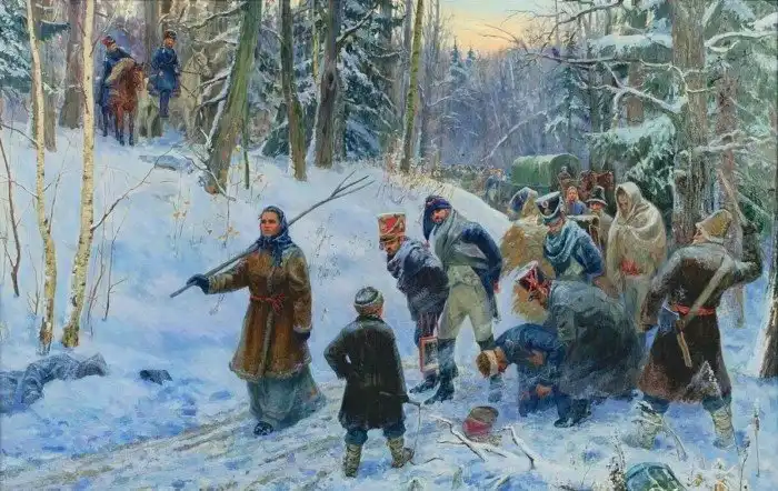 Не получив ответа на предложение о мире, «маленький Бони» оставил Москву. Под ударами русской армии и партизан Великая армия стала стремительно таять и к декабрю превратилась в 20 тыс. оборванных и голодных «шаромыжников», кое-как переправившихся через Березину.