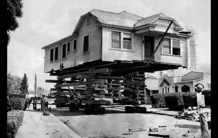 В 30-х годах прошлого столетия в Москве начался настоящий бум на перевозку, а точнее перестановку домов - улицы расширялись, облик города менялся. В 1936 году даже была организована специальная контора — «Трест по передвижке и разборке зданий».