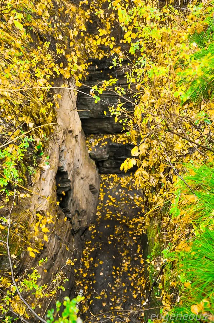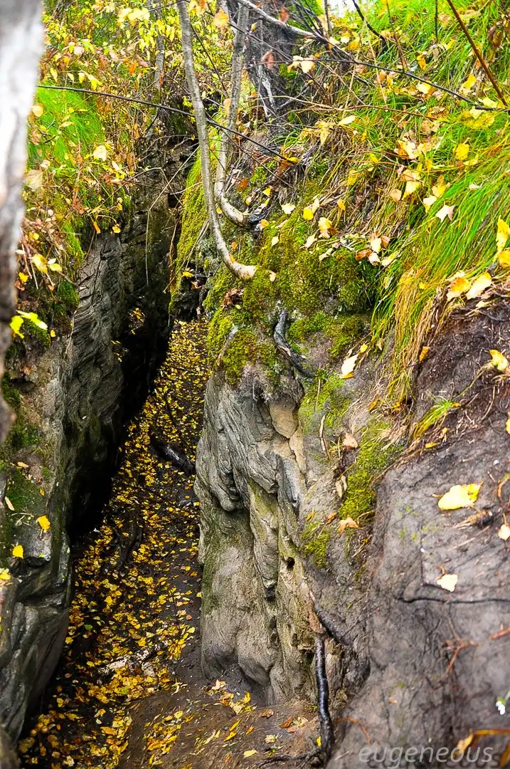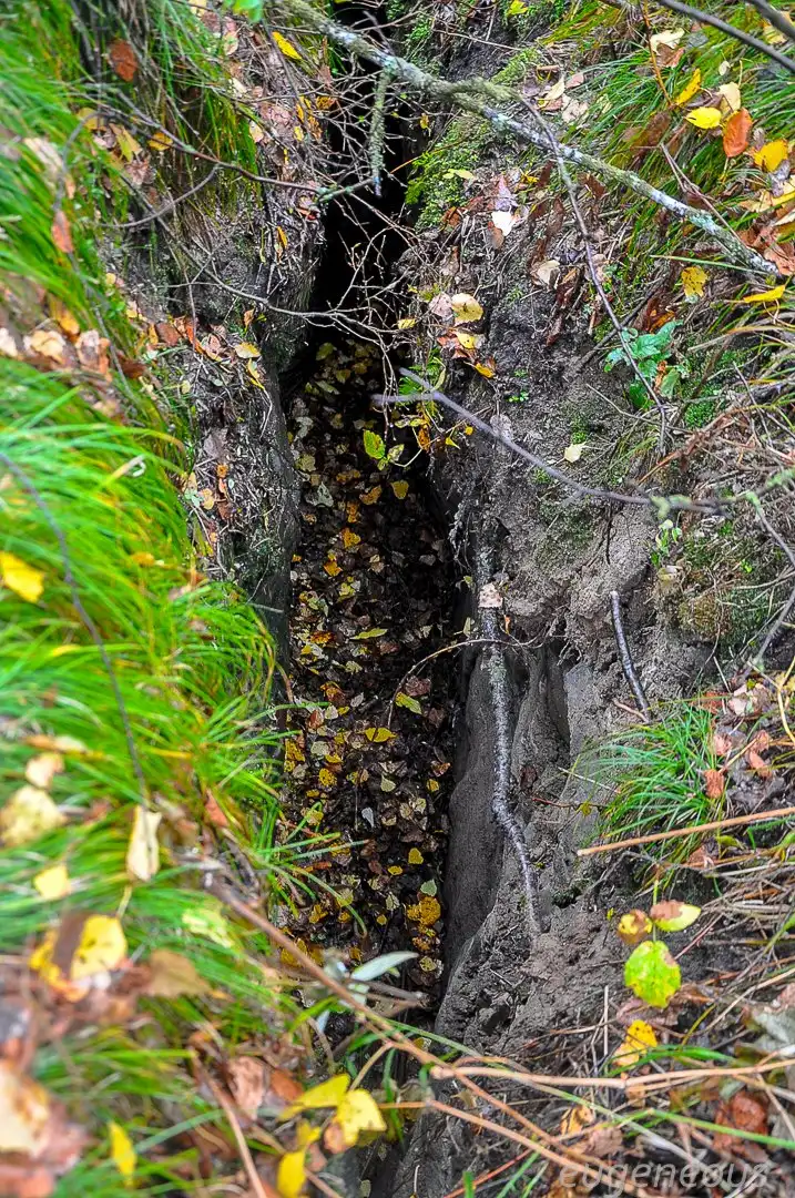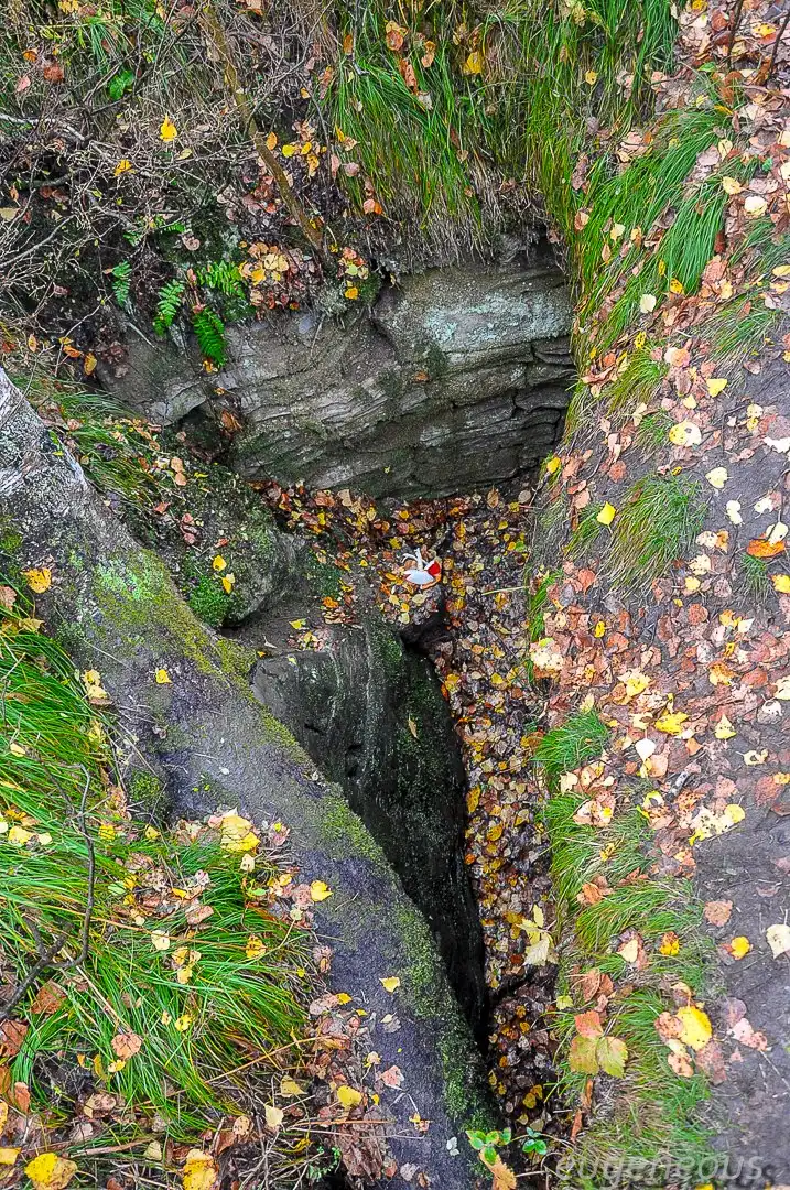 Если не знать, что в этом месте есть такой разлом, то летом, при высокой траве, можно даже не заметить его и провалиться вниз