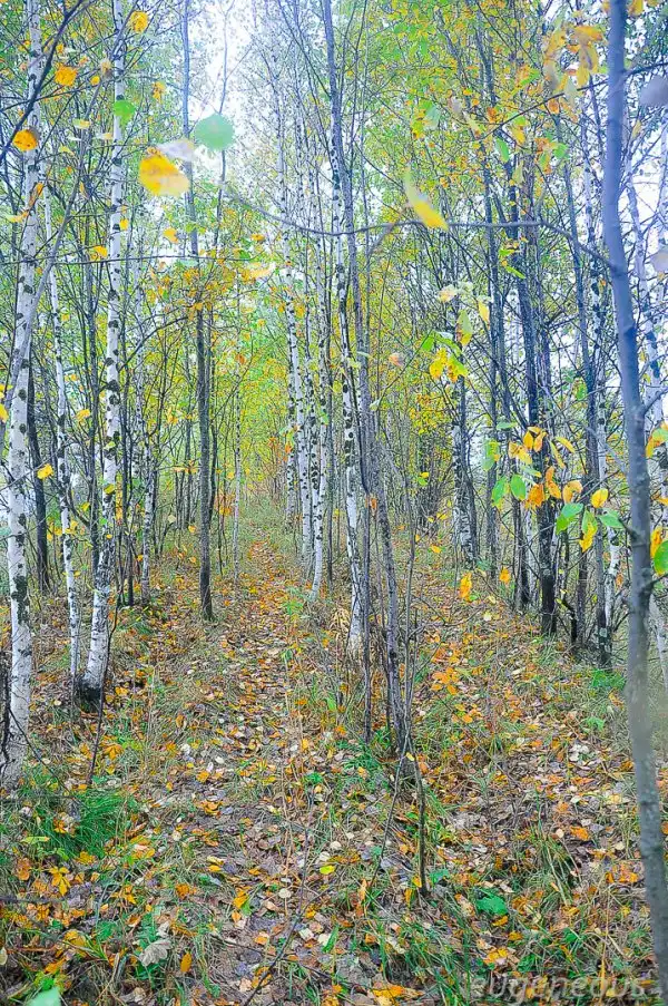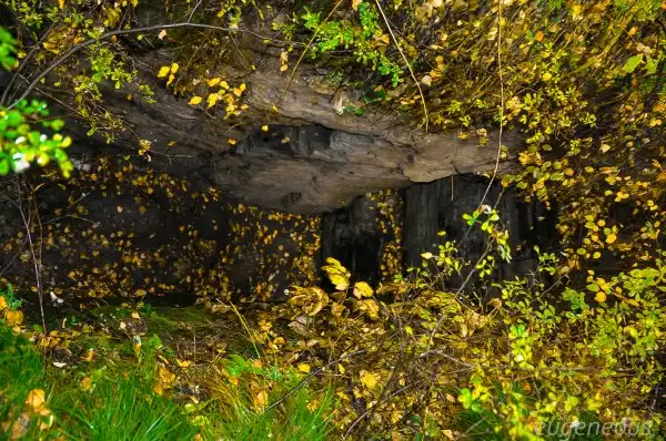Самое главное - не проехать мимо малозаметной тропы, которая уходит вправо от узенькой дороги..Вправо и вверх по госогору. Карабкаетесь по протоптанной тропе вверх по склону косогора и находите перекрёсток двух тропинок. Внимательно присмотритесь к берёзке, которая около перекрёстка и увидите вход в разлом..