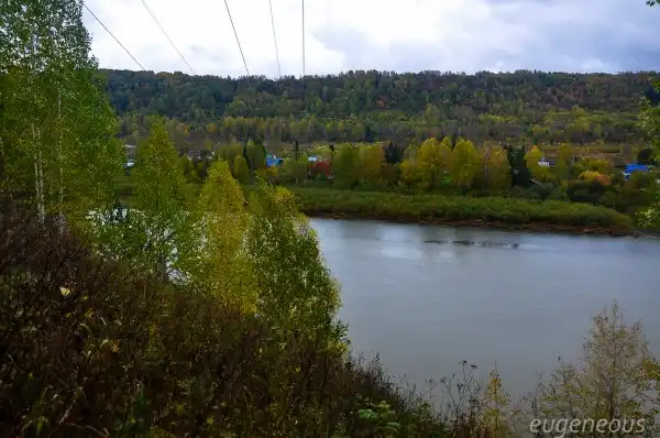 Природа на поверхности радует осенними красками и запахами. Вид с высоты косогора на реку Кондома открывается красивый.