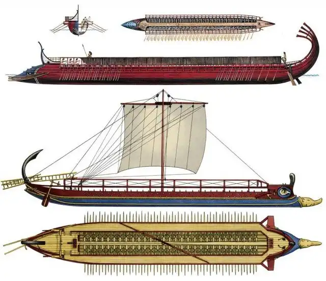 Можно только гадать, насколько это соответствует действительности. К тому же, крайне маловероятно, что боевые палубы греческих трирем не имели никаких ограждений, а рулевой в одиночку управлялся с двумя большими и тяжелыми веслами, которыми он разворачивал многотонный корабль.