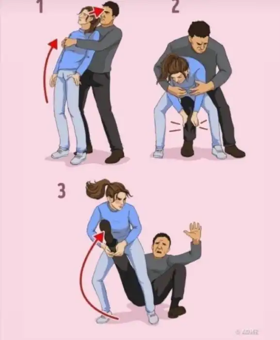 Удар в горло тоже хороший вариант, но помните, что этот удар достаточно опасный, так как может привести к смерти, используйте его если вам реально грозит смертельная опасность