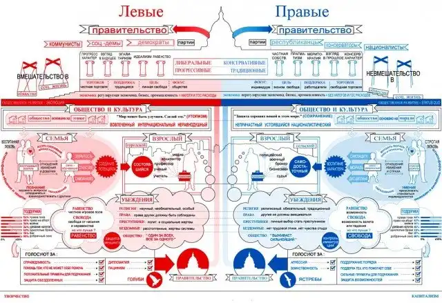 Левые представляют собой полную противоположность правым. Хотя возможен и вариант, когда по одному вопросу человек поддерживает правых, а по другому – левых. Сторонники левой идеологии настаивают на равноправии между всеми членами общества.