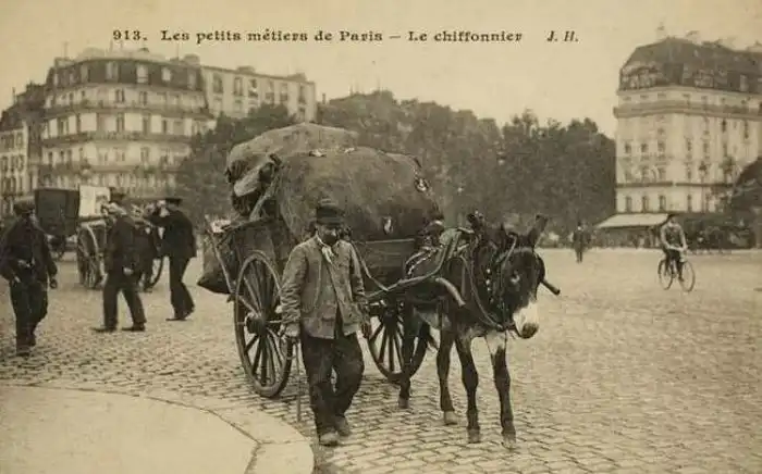 Во Франции в 1884 году насчитывалось 50 тысяч тряпичников. Люди каждый день ходили по улицам, где собирали у жителей обрывки ткани, бумагу, стекло и другой подобный хлам. Эти вещи сдавались на переработку, и мастера изготавливали новые товары.