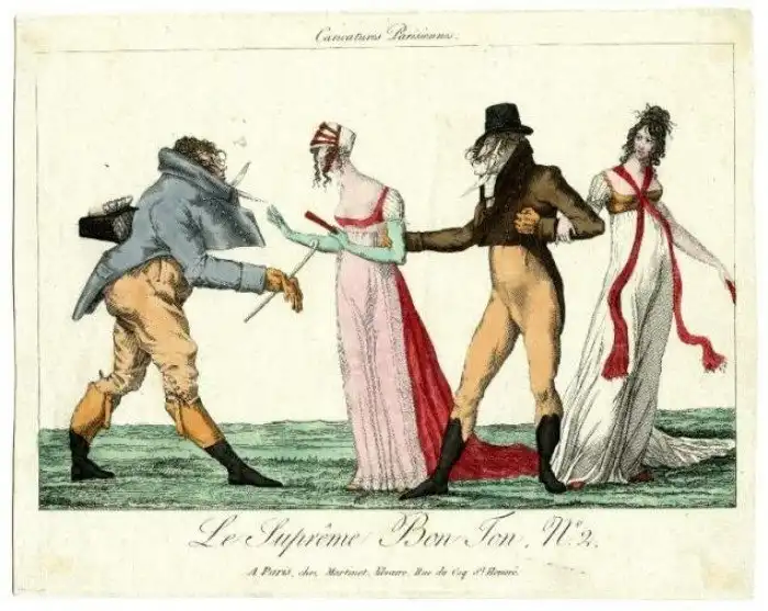 Парижанам хватило всего одного дня, чтобы понять, режим Директории не вернется к столь радикальным мерам борьбы с оппозицией как обезглавливание. И 29 июля 1794 года на улицах французской столицы появились роскошные кареты господ со слугами. И скоро начали мелькать люди одетые по новой моде, причем с известной долей роскоши.Во главе Директории стояли личности, разбогатевшие за время революции, а также изрядно увеличившиеся в своем количестве генералы. Среди этих новых властителей было немало сторонников монархии, так что граждан, открыто выражавших свои роялистические взгляды, никто особо трогать уже не собирался. Этой ситуацией воспользовались молодые люди из богатых слоев, которые стали стильно одеваться и вообще различными образами эпатировать окружающих.