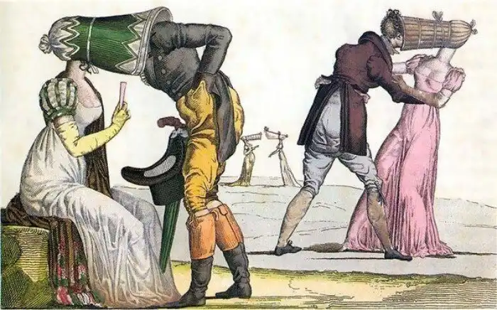 Бывало, что девушки одевали специальные шляпы для поцелуев («тет-а-тет» - буквально переводится как «голова в голову»)