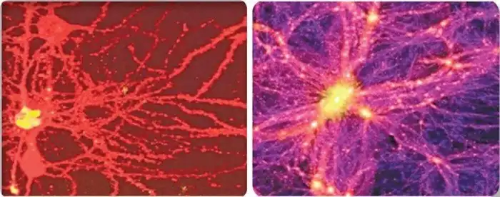 Взгляните на эту картинку, где слева — клетка мозга, а справа — фрагмент Вселенной.