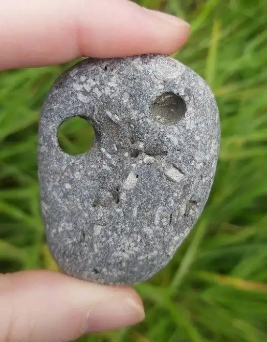 На самом деле появление отверстий чисто природное - их проточила вода. Эзотерики делают на это особый акцент, говоря, что вода отдала камню свою силу, а сильнее воды нет ничего на земле. Вода (морская, проточная или речная) дарит камню энергетику, очищающую от любого негатива.