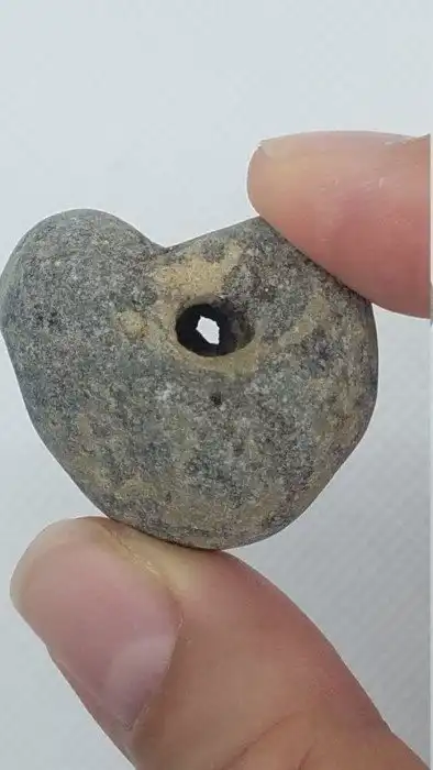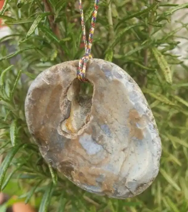 Причем желательно чтобы отверстие находилось именно посередине камня, тогда сделанный из него талисман будет обладать самой большей силой