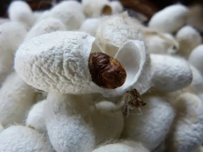 Правда, чтобы получить качественный материал, куколку убивают, поливая кипятком. Такая мера необходима, чтобы сохранить качество будущей ткани — иначе взрослая бабочка, выбираясь из шелковой колыбельки, продырявит нити едким веществом, повредив их.