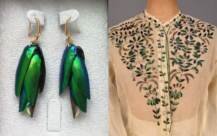 Раньше надкрыльями златки украшали платья вместо камней. Но сегодня — это стало необычным элементом хэнд-мейда.