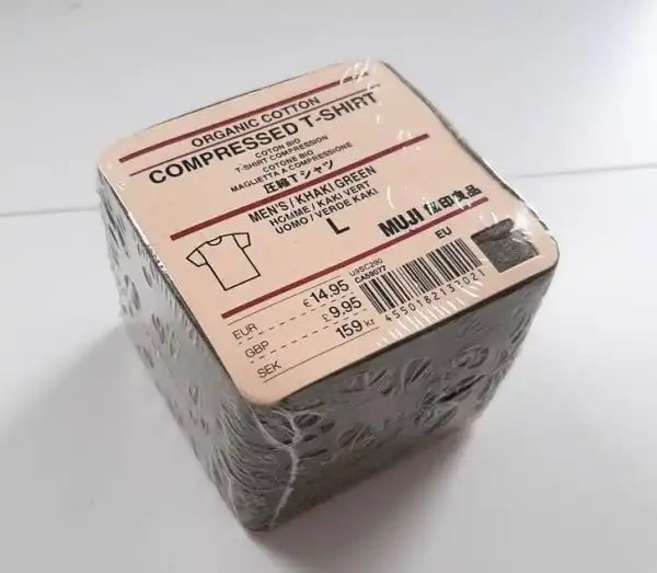 Японская компания Muji упаковывает свои футболки в форме куба.