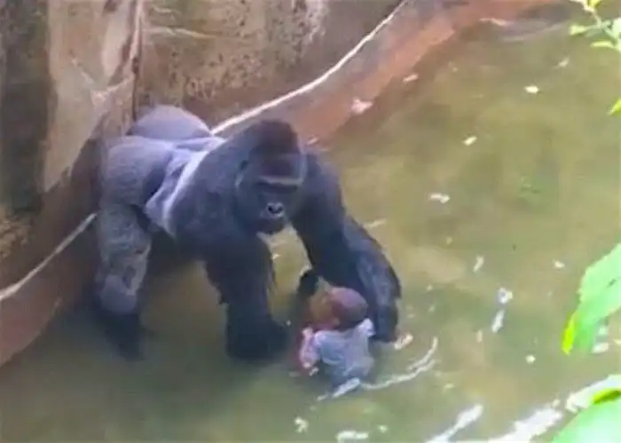 Следующая история приключилась с трёхлетним мальчиком в американском городе Цинциннати в 2016 году. Ребёнок, свалившийся в загородку к горилле, провёл там больше десяти минут. Горилла – весьма сильное животное и может быть чрезвычайно опасным. К счастью ребёнок отделался царапинами и ушибами, полученными при падении.