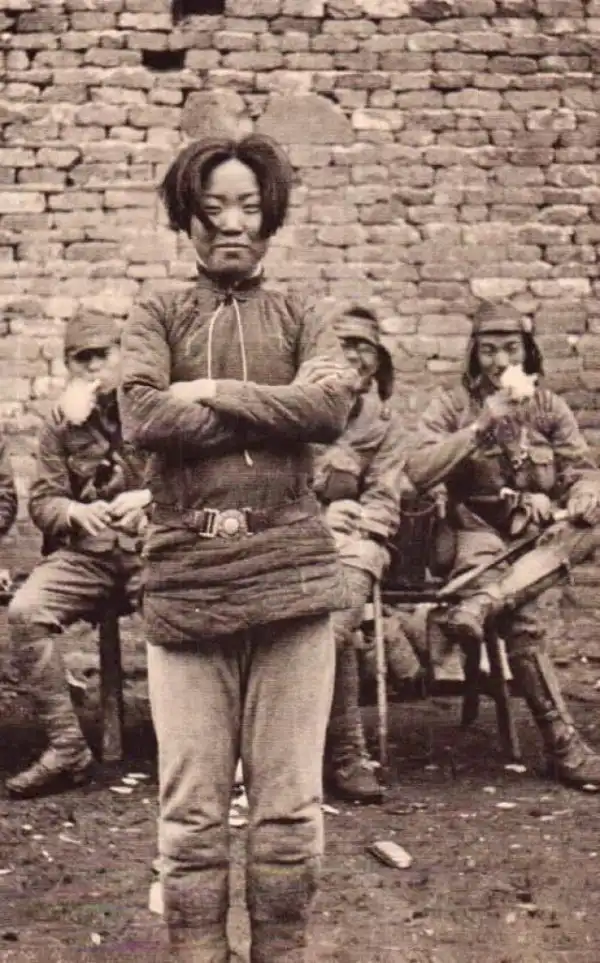 На самом деле, за этим весёлым кадром скрывается трагедия. Девушка, которая пренебрежительно улыбается перед камерой – китайская партизанка, приговорённая к смерти.