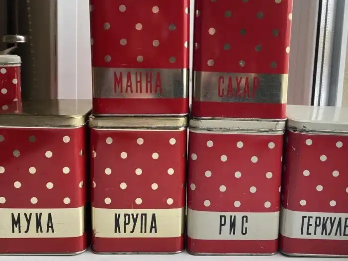 После практики разношерстных емкостей набор, состоящий из шести больших, шести средних и шести маленьких баночек, знаменовал переход на новый уровень культуры быта.